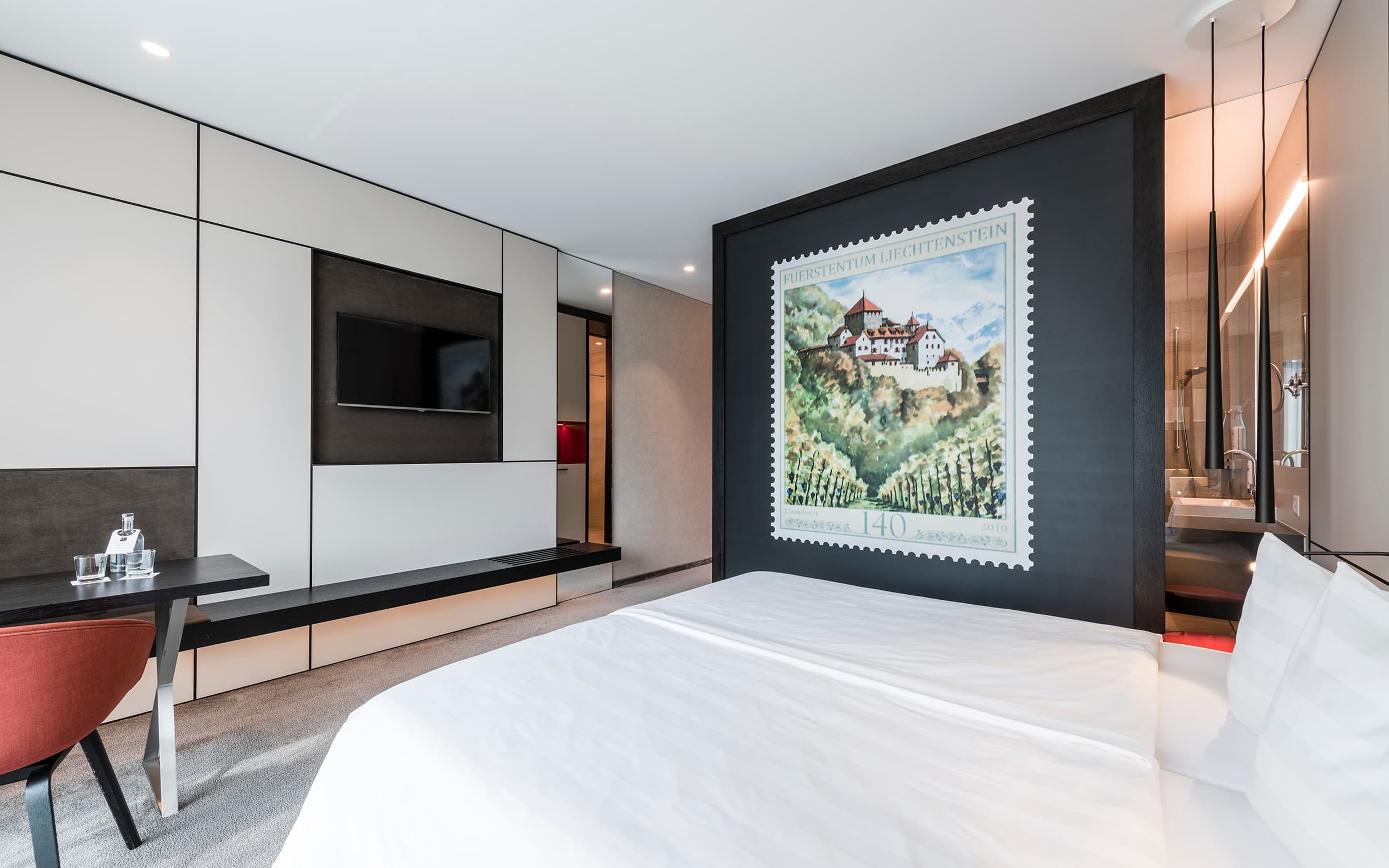 Erleben Sie Komfort und Ruhe in unserem Standard Zweibettzimmer, ideal für Einzelreisende und Paare. Mit einer grosszügigen Fläche von 23 m² bietet das Zimmer ausreichend Platz zum Entspannen und Arbeiten. Die moderne Einrichtung und die hochwertige Ausstattung sorgen für einen angenehmen Aufenthalt.